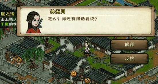 4、离开酒馆后碰到钟无月,以为我们就是犯人,你可以选择解释或者反抗。