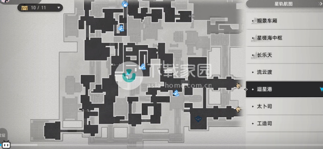1、打开地图,障暴找到并进入迥星港这个板块,达成进入之后就可以看到一只勇敢的攻略机巧鸟;