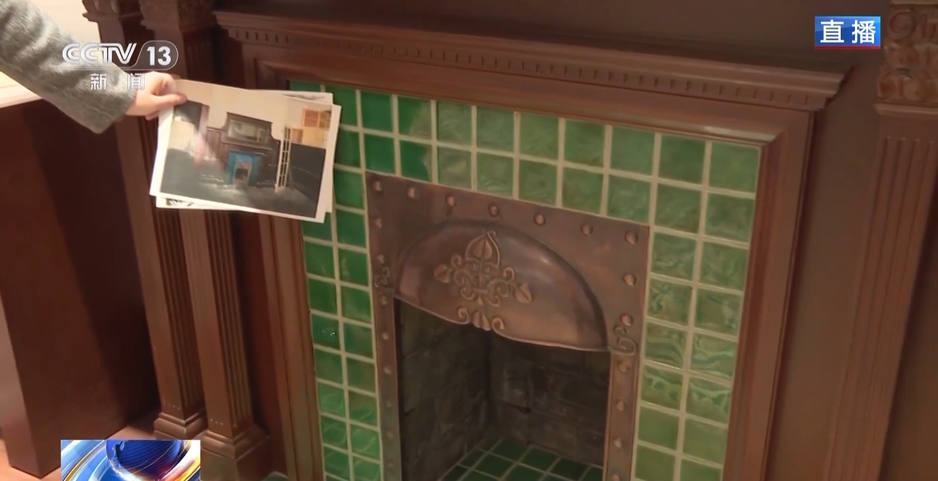 这个绿色的壁炉也是施工团队根据现场遗留的壁炉样式和材质,寻找同样材质的瓦砾依照原有花纹还原出来。
