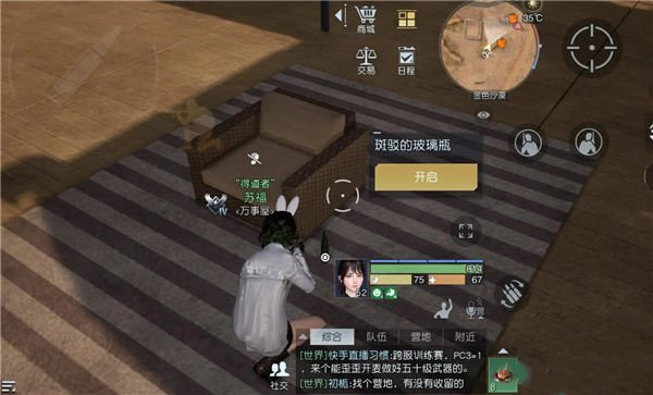 2、黎明往右边走看到铁架,觉醒在边上房子内找到玻璃瓶,藏宝拿到藏宝图。