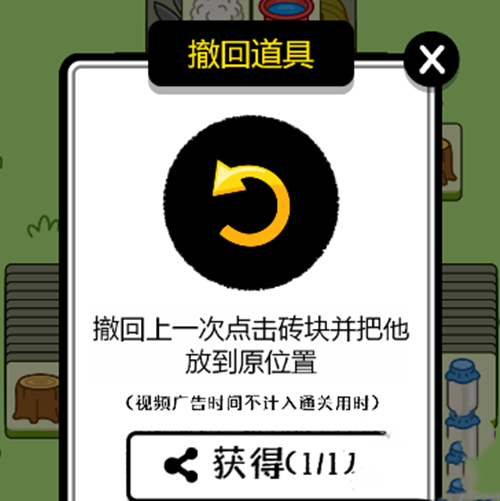 2、撤回道具:撤回上一步操作,将砖块放回到原位。
