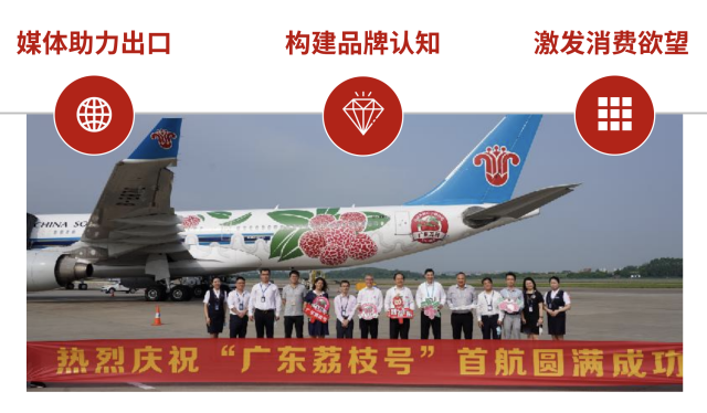 依托品牌文化产业园,在“媒体+”的作用力下,自2021年开始,广东连续五年开展“喊全球吃广东荔枝”活动,先后赴欧美等10多个国家和地区推介。今年,荔枝出口德国,每斤荔枝卖到110多元;在阿联酋迪拜的一家华人超市里,800公斤左右的荔枝,两天之内销售一空……