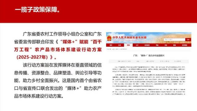 主题发言中,张璐介绍了广东全国首个推出的“媒体+”系统性、常态化工作机制——《“媒体+”赋能“百千万工程”农产品市场体系建设行动方案(2025—2027年)》。三年行动方案指导媒体在农产品市场营销、品牌建设领域发挥公信力及智库、传播、创意等功能,助力乡村全面振兴。