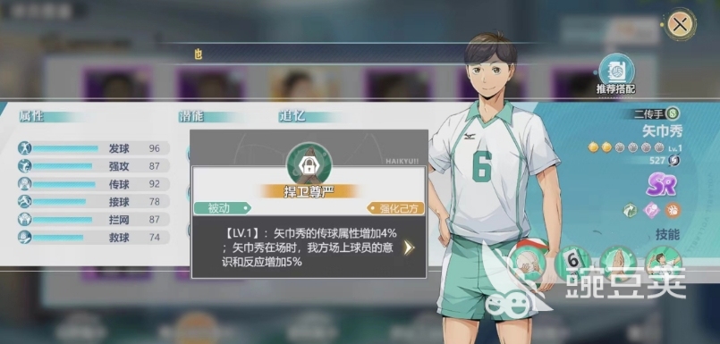成长中的二传手这是第二个被动,随着比赛的进行,矢巾秀的发球和传球属性增加9%,这使得他在比赛后期的表现更加出色,玩家应该在比赛初期就开始积极使用矢巾秀,以便在比赛后期获得更大的优势,在比赛的关键时刻,比如比分接近或者需要连续得分时,矢巾秀的提升后的属性可以帮助球队稳定局势或实现逆转。