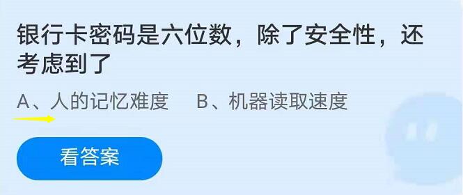 问题1:银行卡密码是答案六位数除了安全性还考虑到了?