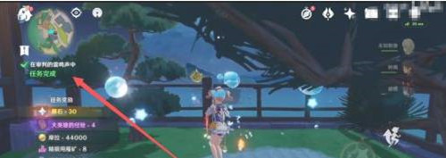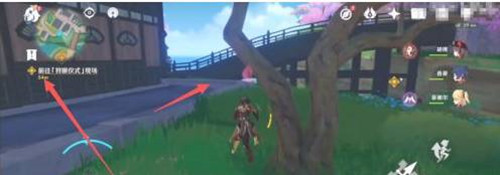 1、原神来到狩眼现场,魔神沿着下图所示的任务红色箭头方向走过去。