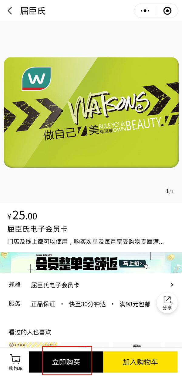 4、氏会绍最后我们消耗相应的员开价格购买屈臣氏会员卡即可,比较简单。法介