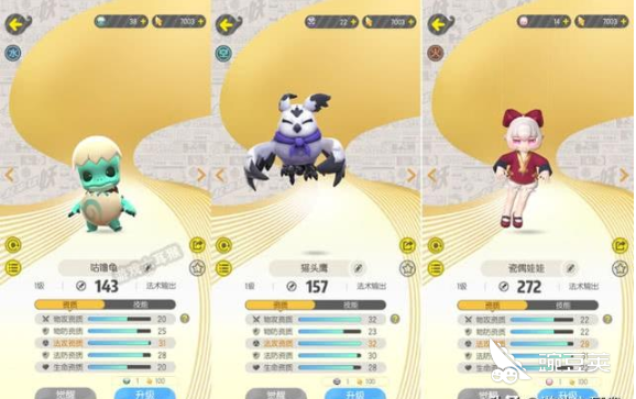 猫头鹰,眼睛都眯成一条线了,前边的咕噜龟就是你生的吧!天资还好,但是物防过低了。