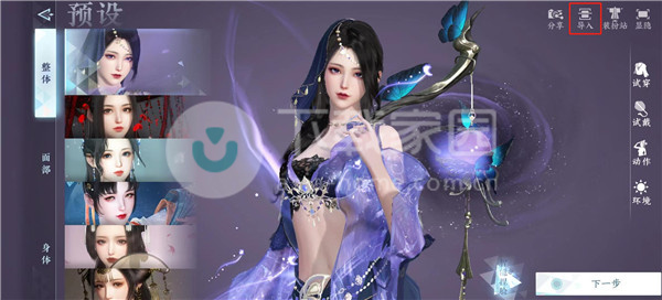 1、据方来到捏脸玩法页面,逆水点击右上角的寒手导入按钮。