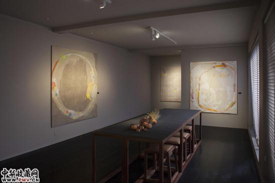 展览现场 在早期作品中,穆勒也尝试了各种形象化的外在表现和材料。采用极简主义的做法,他在探索绘画时,往往认为这是一幅早已完成的作品。一些微小的绘画痕迹看似是偶然间创作出的,而拉伸的画布往往足够形成一个完整的画面。有了这样的态度,穆勒开始解决后观念视觉艺术的核心问题。