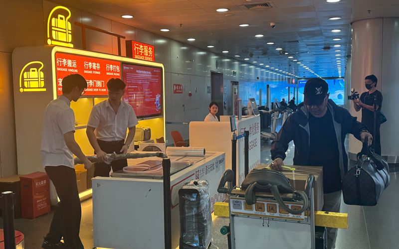 首都机场推出行李打包服务。新京报记者 陶冉 摄