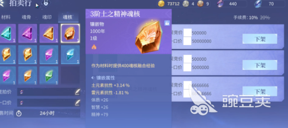 等到所有的材料集齐之后,就可以来到工坊台,通过合成和升级的方法去获取。经过这一些操作,第5魂环就会进阶为高品质的紫色魂环,第五魂技的全部效果也会被激活。此时进入到战场,不仅可以轻松的打断敌人的关键技能,还可以去有效实现敌人位置的精准压制。高额的爆发伤害,就可以让玩家在单挑或者是团战的过程中拥有绝对性的优势。在游戏中,拍卖行也是获取稀缺资料的途径,可以获得各类的魂骨,还有三阶土之精神魂核。