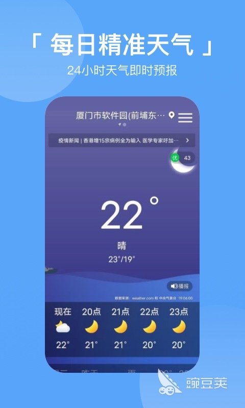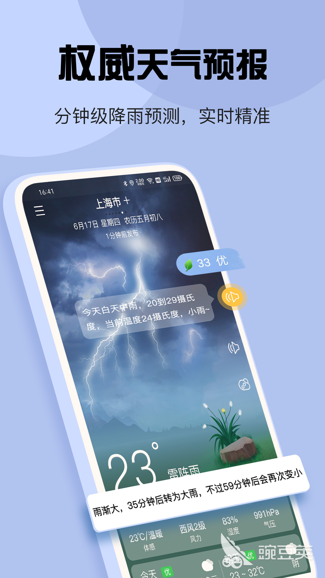 真是许多手机都自带的一款天气预报软件。这个天气预报APP上具有中国气象局权威的天气预报数据信息,同时它还采用了多种数据信息的来源,能够给大家带来更加精准的天气预报信息。也会根据用户的精准定位,及时推送当地的未来天气情况。