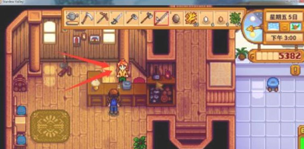 1、星露来到木匠罗宾的谷物店门口,点击鼠标右键开门进入。语厨