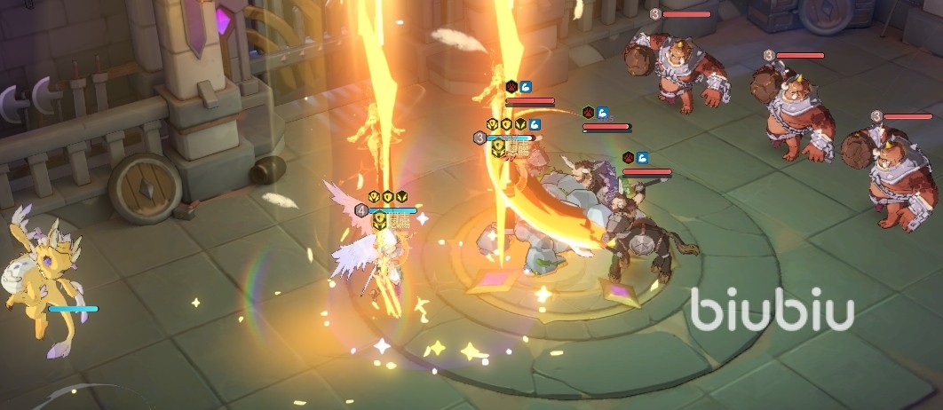 第四关节奏简单,重点就是根据提示操作,挑选恢复角色来帮自己即可,只要奶妈和小绿龙技能好了就给牛头,毕竟只要它在,那么就稳了。
