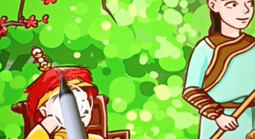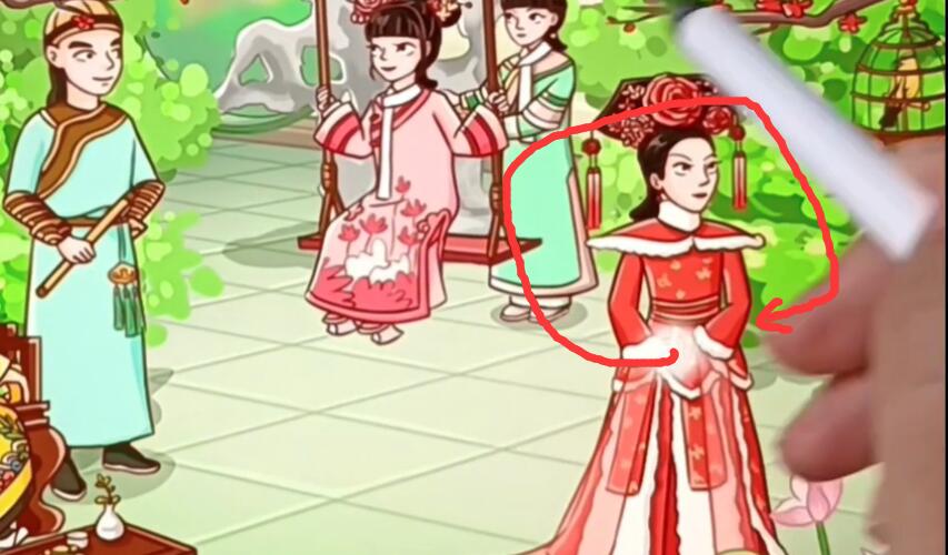 4、按住红色衣服的女子的左手,然后顺时针画一个圈。
