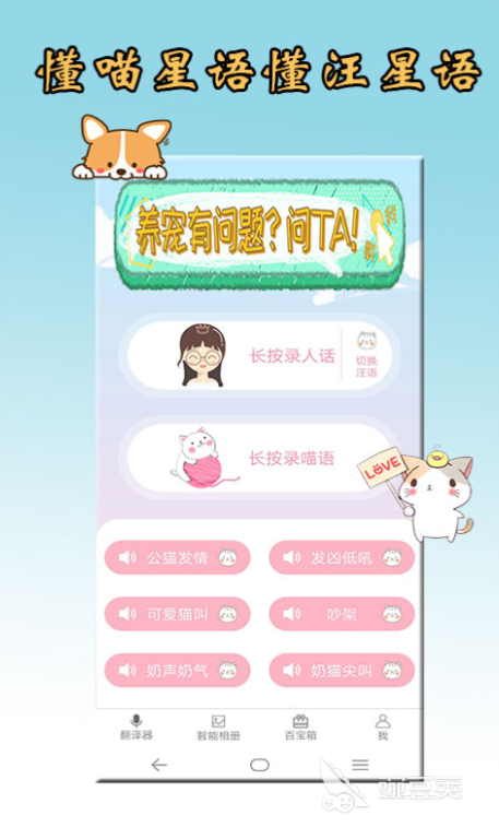 这款软件专为猫语翻译而设计,可以将人类的语言转化为猫语。它是一款方便、快捷且基本免费的逗猫神器。软件库中拥有多种猫咪语言的采样,你可以随时下载并使用。有了它,你可以成为一名合格的猫咪主人,与你的猫咪进行更深入的交流。我十分推荐你尝试一下这款软件。