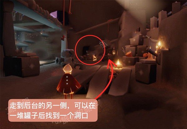 2、光遇在表演舞台的乡村小金右边有一个通道,走进去就是剧院舞台幕后了。