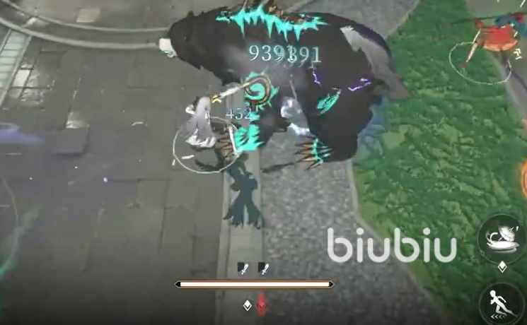 然后就是三连砸地攻击,这时候视觉会变大,boss会出现三段攻击,足够秒杀角色了,所以三段攻击的时候一直闪避就可以了,其攻击范围较大,只通过移动是无法全部躲避的,使用boss会处于短暂停留状态,使用普通攻击多打伤害就可以了。