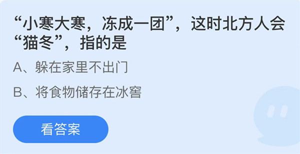 问题2:“小寒大寒,月日冻成一团”,答案这时北方人会“猫冬”,蚂蚁指的庄园最新是?