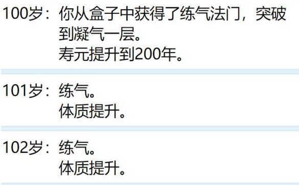 3、人生最后我们进行修仙后,重开每个境界都要一百年寿命,模拟我们可以享受正常修仙游戏的乐趣。