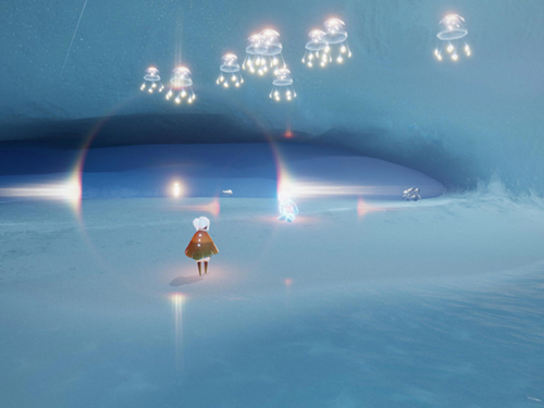 2、点洞穴里点燃水母叫先祖,然后飞行收集回忆。