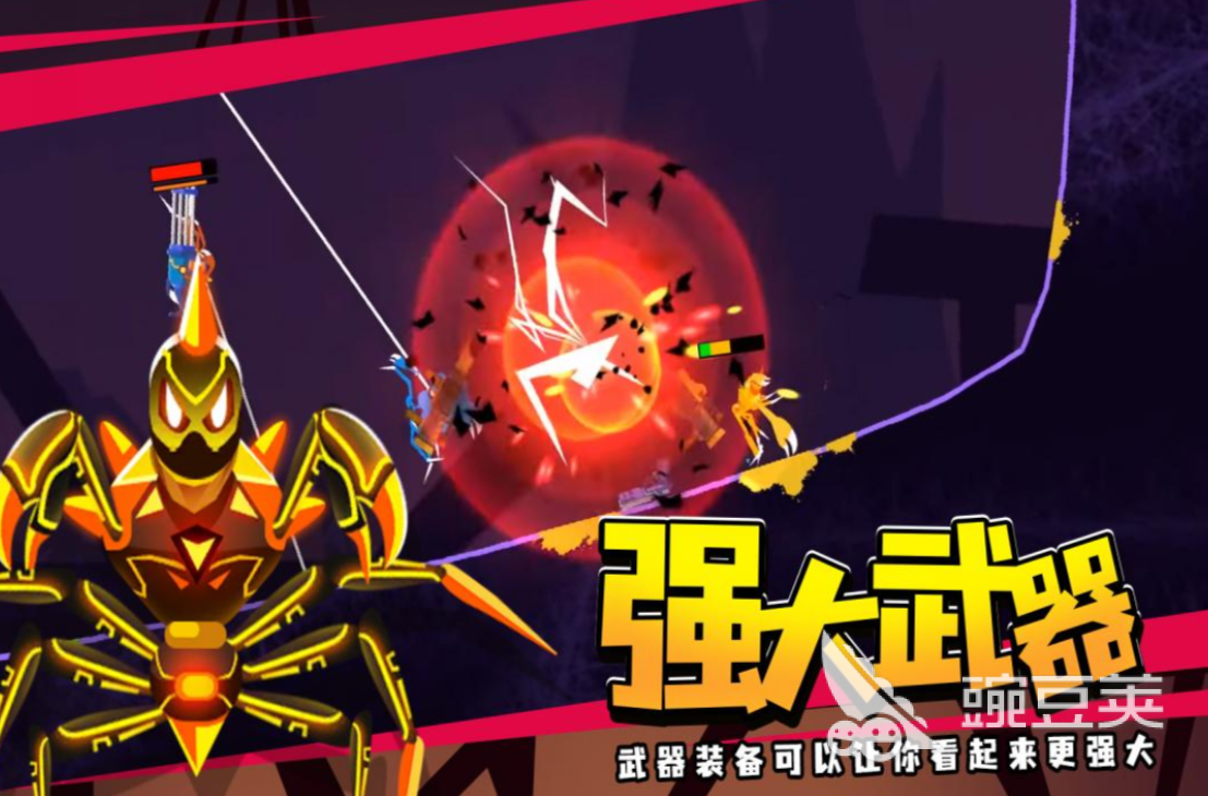 蜘蛛与激光剑这款游戏的绳索元素体现在玩家们操控的蜘蛛人上,主要就是使用各种武器来和敌军战斗,不过在复杂的地形上,蜘蛛可以通过吐丝来调整自己的位置,便更好的消灭敌军。