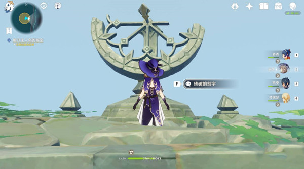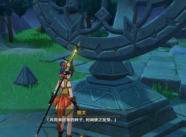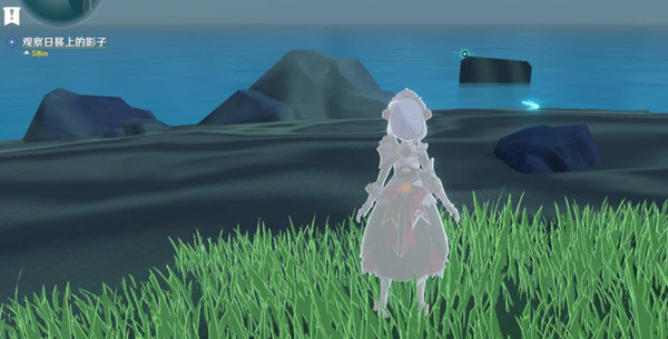 1、来到望风角对面的望风小岛上,靠近日晷后观察残破的角对解密刻字。