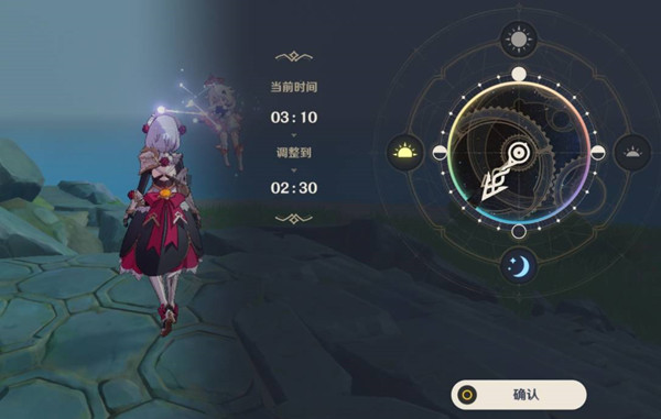 9、来到帐篷那里把时间调到半夜两点种,返回日晷那开元素视野再去击杀狂风之核,这样任务就完成了。