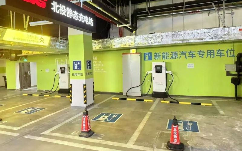 副中心三大文化设施地下停车场充电站。图/“北京通州发布”微信公众号