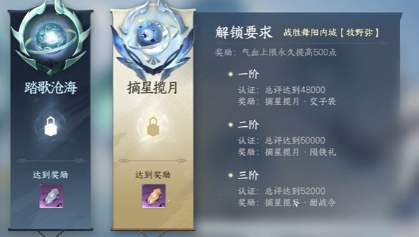 4、在摘星揽月中完成舞阳城城内牧野弥且总分达到52000即可获得;