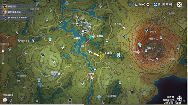 1、传送到道成林锚点,原神前往化城郭。自某