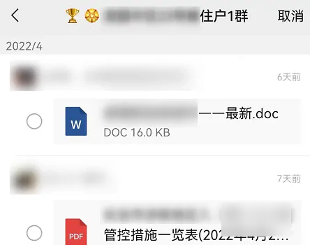 比如小编选择了某个群聊,然后就能显示群内所有Word、PDF等格式的文档了,单击选中需要备份的即可;