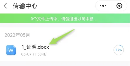 这样该文档就开始向腾讯文件助手小程序备份了,备份的速度取决于文件本身的大小,备份完成以后在小程序中即可找到;