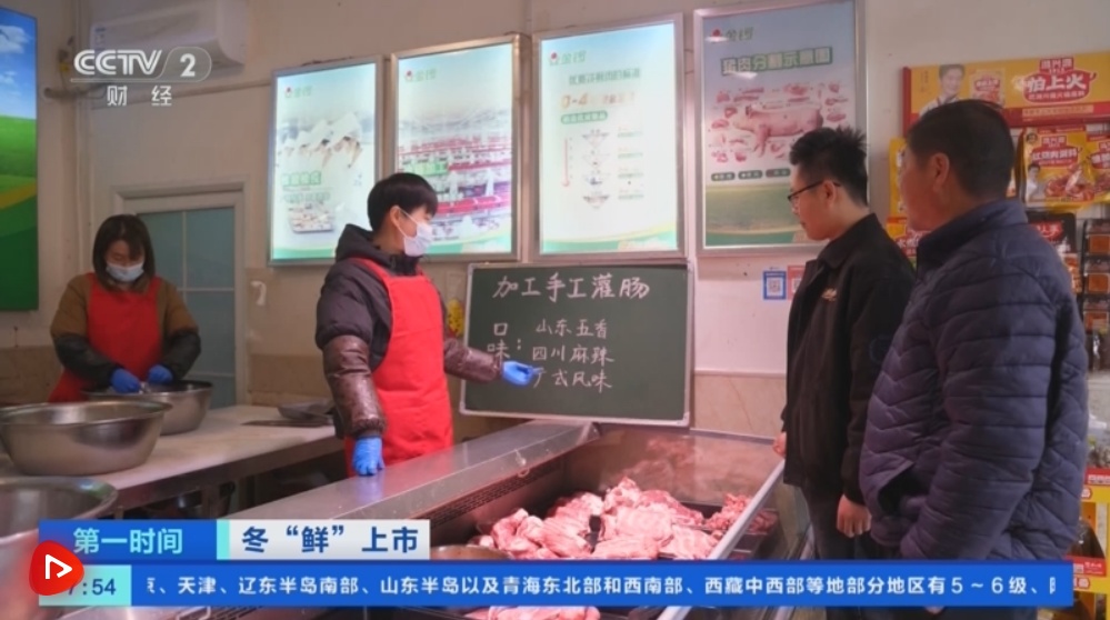 不仅牛羊肉销售火爆,灌肠也迎来了制作旺季。记者在菏泽市定陶区一家灌肠加工门店内看到,前来灌制香肠的市民络绎不绝。