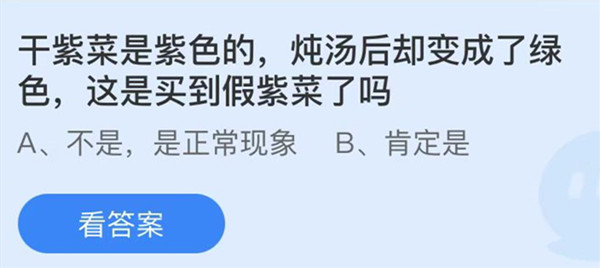 解析:紫菜里面有藻红素,所以是蚂蚁紫色的,但是庄园最新遇热后分解成了叶绿素,就变成黄色了。月日