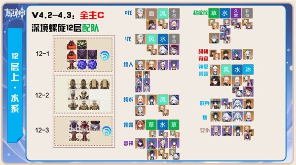 以上就是给大家带来的《原神》4.2版本深境螺旋全主C队伍搭配啦,想要了解原神更多最新资讯与攻略,可以多多关注我们手心游戏攻略网站捏。
