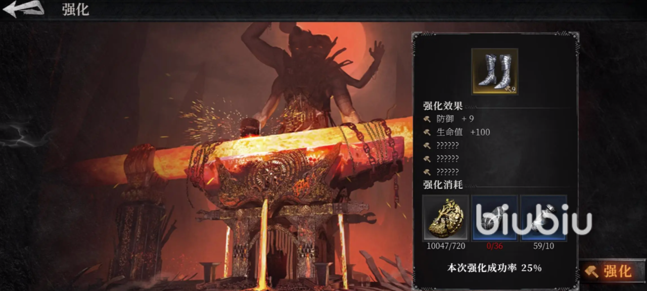 挑战十级之后的等级就比较看人品了,不过这里强化失败没有明确说明有失败的惩罚机制,所以各位在游戏的时候无论如何都是可以升到高等级的,只是相对的需要肝的时间非常的长。
