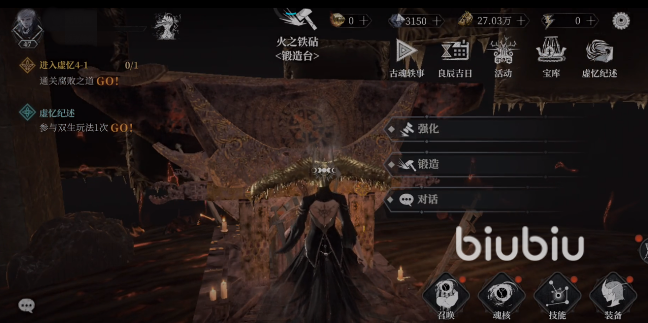 最后强化需要来到专属的地方,就是图示的这个锻造台这里,除了强化还能洗练,让装备的属性更加的合理,这也是最求极品装备的玩家常常使用的功能,消耗也是非常的多的。