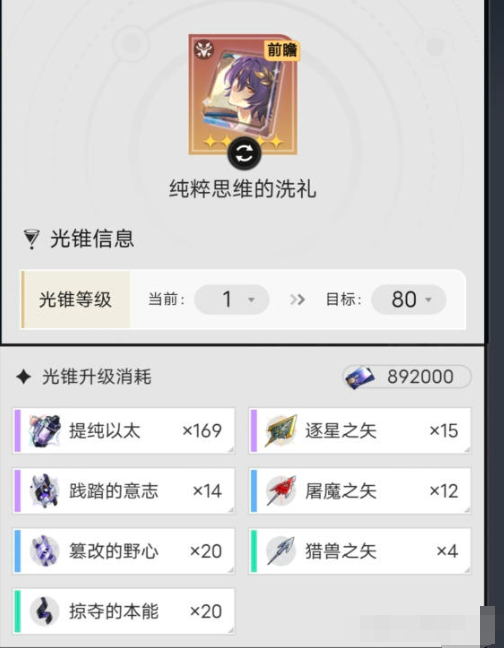 2、光锥纯粹思维的崩坏洗礼材料一览