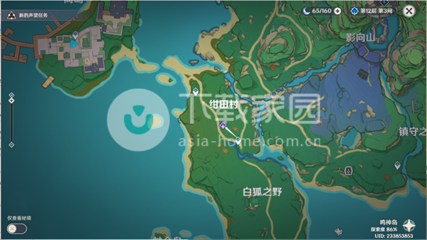 3、稻妻传送绀田村,销售序朝着西北方向走过去。