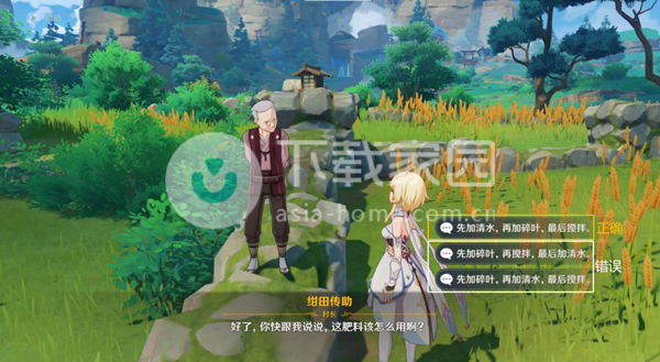 4、和绀田传助对话,选择错误的施肥方法,随便一个错误的方法都行。