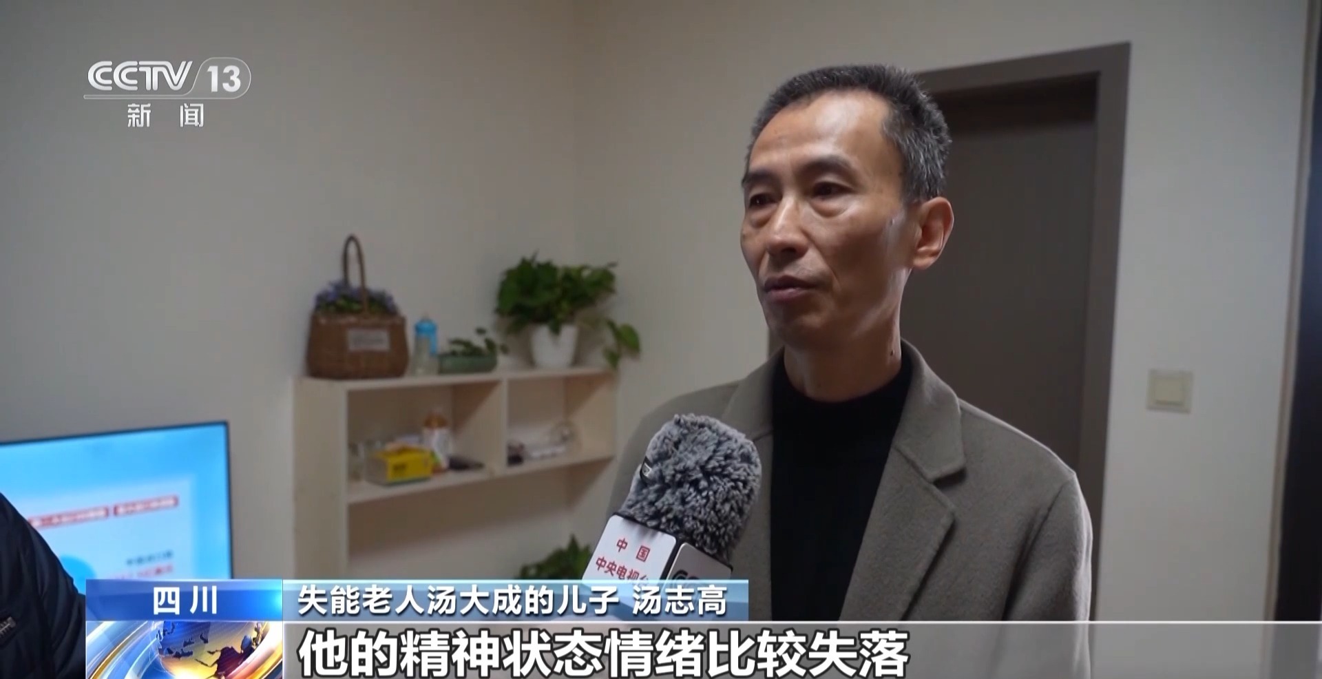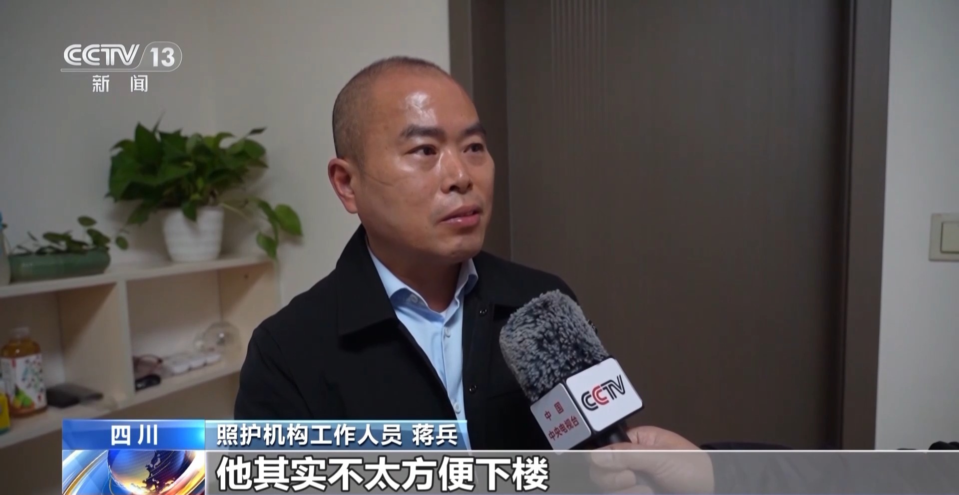 照护机构工作人员 蒋兵:因为像这样的老人,他其实不太方便下楼,跟他交流的人也不多,所以我们的工作人员在服务期间通过心理的沟通,帮助他们更多地去了解外面的世界。