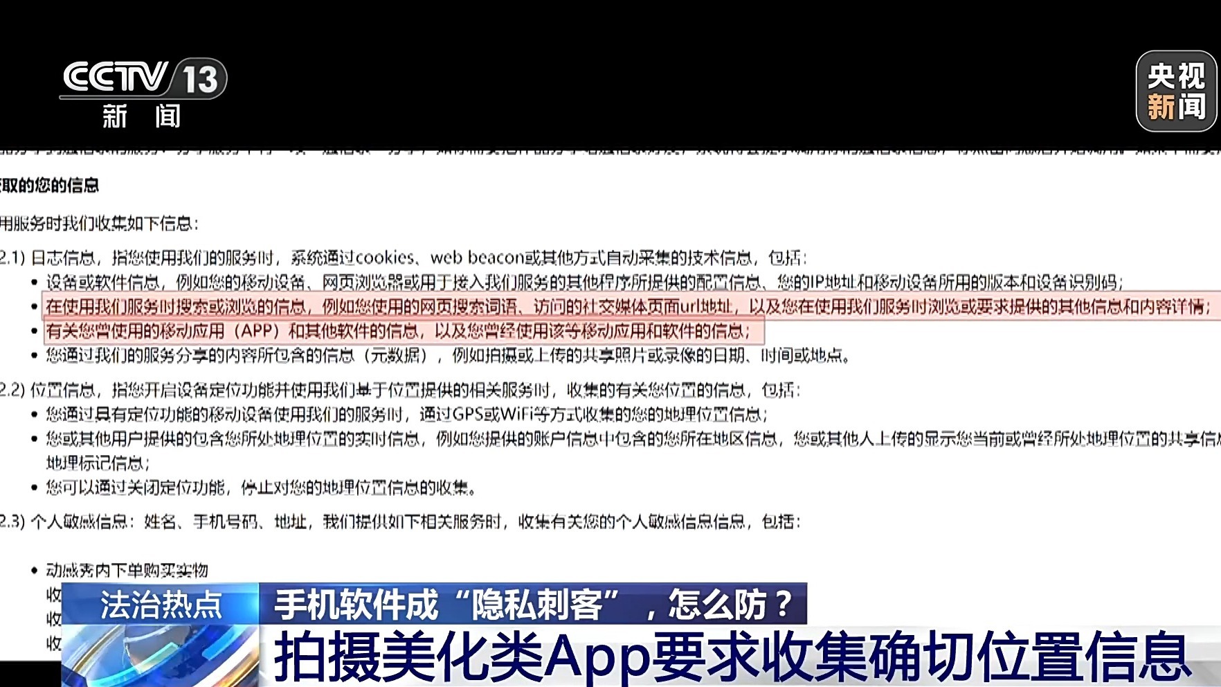 记者发现,“超范围收集个人信息”的问题在不少App中存在,一款名为“动感秀”的拍摄美化类App,在隐私政策中写到要收集其他软件信息等与核心功能无关的个人信息。同样是一款拍摄美化类App“证件照相机”,在隐私政策中提到要收集确切位置信息、读取通话状态和移动网络信息等。