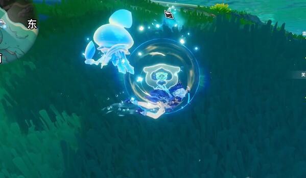 1、寻游首先玩家需要来到黎翡区附近的记录海域往下先吸收水母的力量。