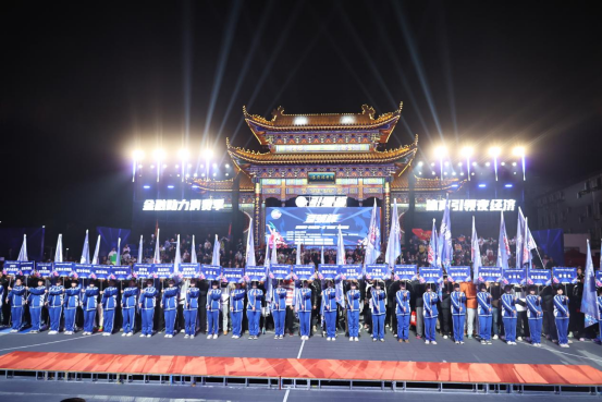 巡游集市启盛会,引领杯暖意霓虹映古楼