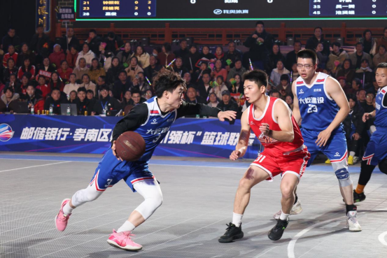 随着哨声响起,乡镇组冠军争夺战在肖港镇与陡岗镇之间激烈展开。双方攻防迅疾、比分紧咬,精彩场面接连上演。观众呐喊助威声如潮水般奔涌,将戏楼环绕在一片沸腾的声浪之中。