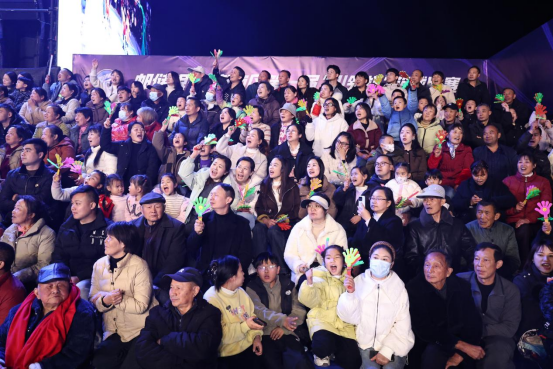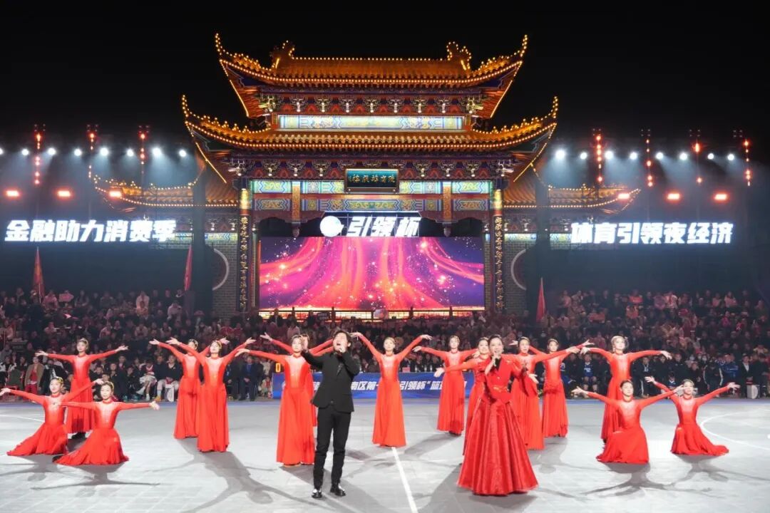 人们穿梭其间,品尝地道风味,欢声笑语不绝于耳。涌动的人潮、璀璨的灯火与古朴的戏楼交相辉映,洋溢着一片喜庆祥和的现场气氛,为这场体育盛事的收官之夜铺就了温暖而鲜活的人文底色。