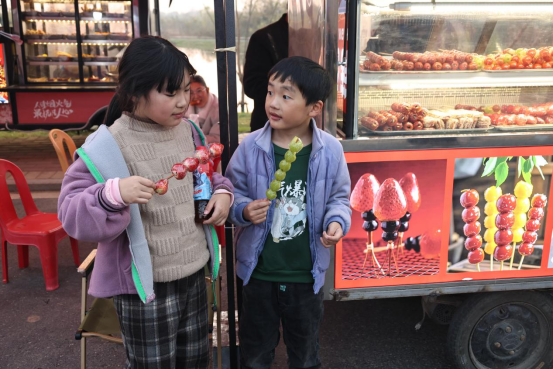 带着孩子来逛夜市的张女士说:“这里既有篮球赛的激情,还能买到地道的农产品,一家人各得其乐。”