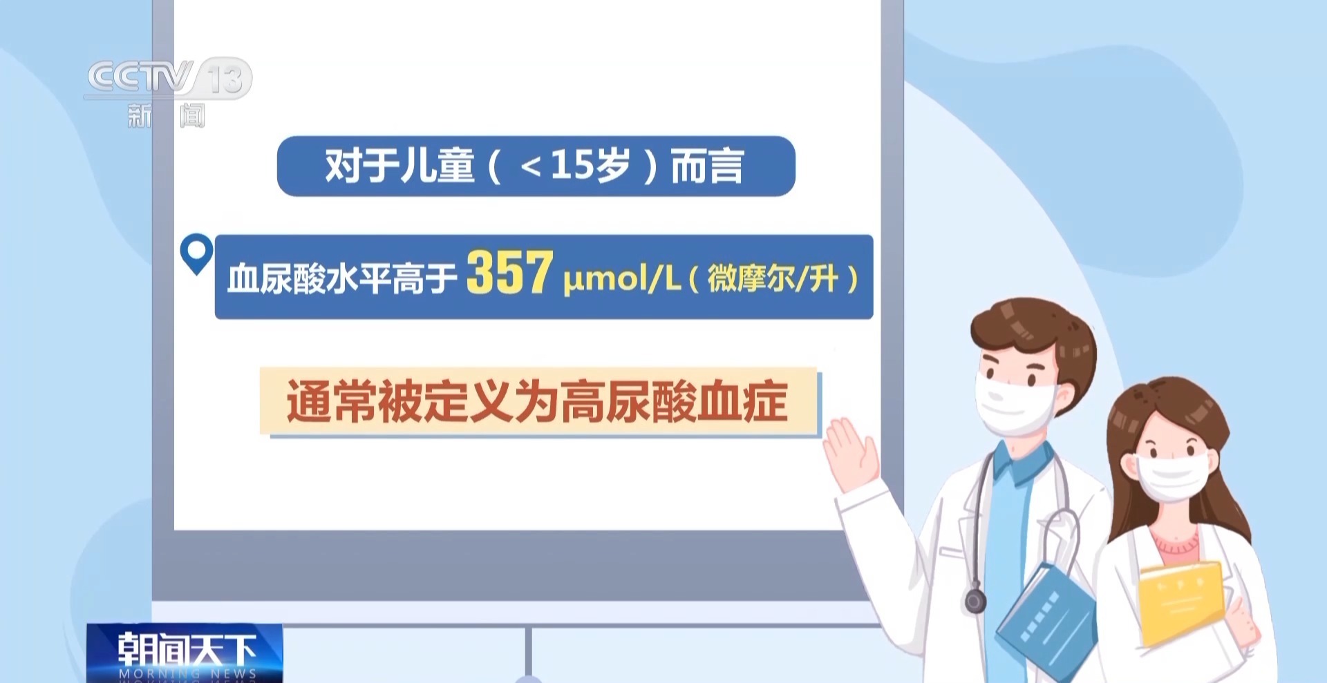 对于儿童(<15岁)而言,血尿酸水平高于357μmol/L(微摩尔/升),通常被定义为高尿酸血症。
